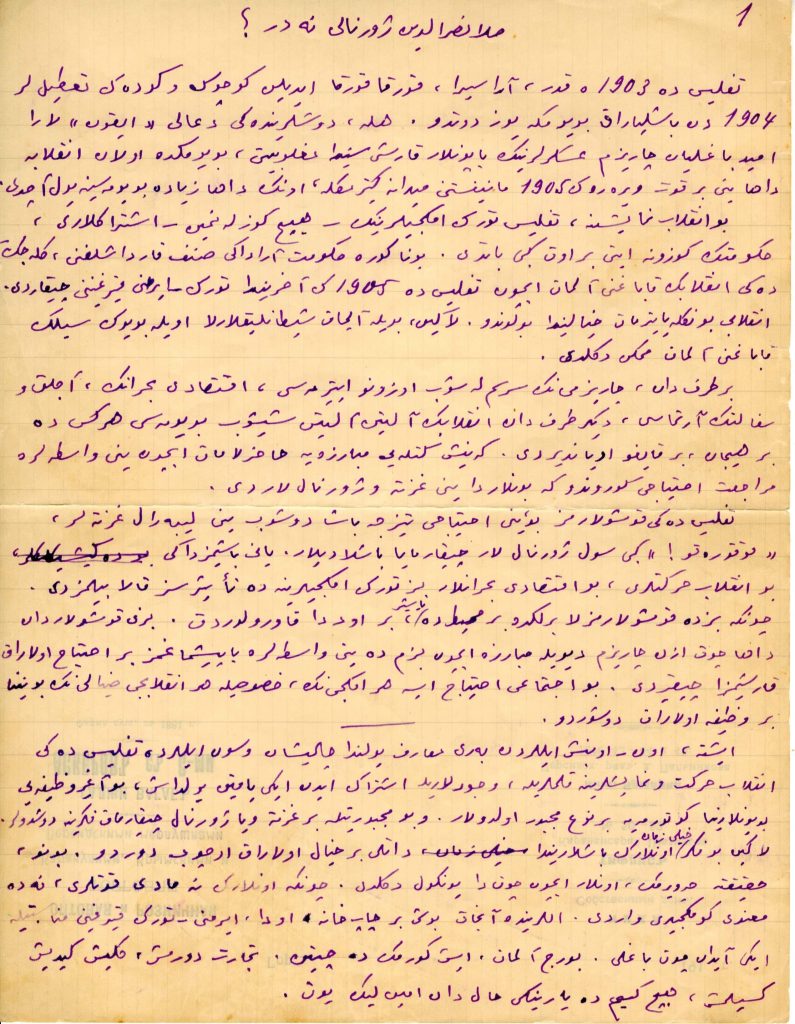 Ömər Faiq Nemanzadənin AMEA-nın Füzuli adına Əlyazmaları institutunda saxlanılan “Molla Nəsrəddin” nədir” adlı əlyazması.